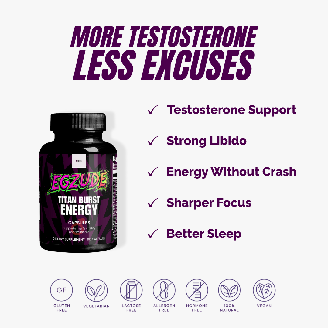 Zinc, Tongkat Ali, Tribulus Terrestris, Horny Goat Weed → Together, these drive natural testosterone production, heighten libido, and keep your masculine edge sharp.